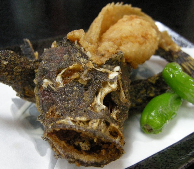 →これまた珍しいメニューがあると、喜んで注文。大部分が食べられるようにじっくり揚げてくださっていました。ポン酢にアサツキを散らしたものに浸けて食べます。おこぜの身は淡白で、プリっとしていて美味しいなあ。周囲のカラっとした食感と交互に楽しみました。