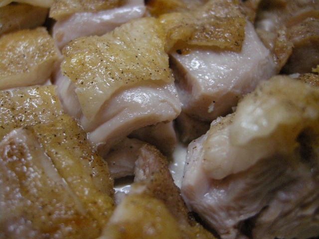→大きなもも焼きを一口大に食べやすいように切り分けてあるものでした。味付けは、タレか塩を選べるとのことで、塩でお願いしました。お肉は、ふっくらジューシーだったのですが、たまたまかと思いますが、塩が強めでした。あとは、胡椒がかかっていて、レモンが添えてありました。