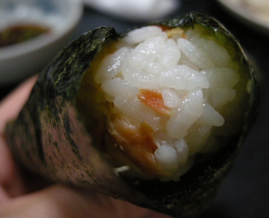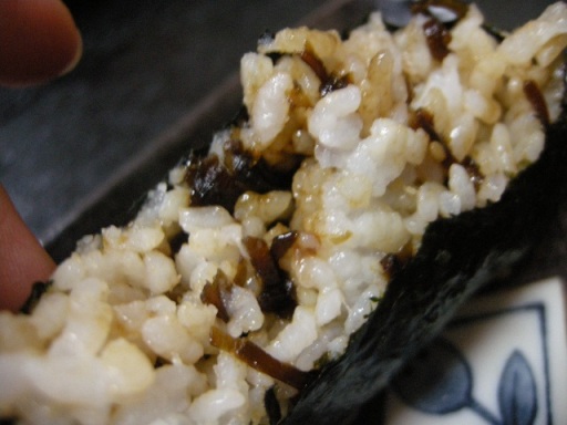 →お握りを注文するときに、お味噌汁はどうされますか?と聞かれ、1つだけ注文。この日は、アサリかシジミがあるとのことで、シジミをお願いしました。シジミといえども、身が大きく、全部身まで食べられちゃいました。この店で扱う食材はどれも気合が入っているなあと感心しました。