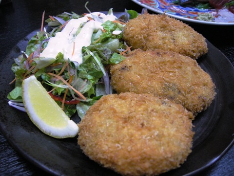 ・「毛蟹クリームコロッケ」蟹身が入っていて美味しい~。3個しか残っていなくて半分ずつ分けて食べたので一人分の量は少なかったのですが、クリームコロッケといってもミルクミルクしていなくて、和風の大人向けクリームコロッケという感じでした。もしかしたら洋風のクリームコロッケを想像して食べると好みと違うのかも?でも刺身とも合うクリームコロッケなのでこれでいいと思いました。