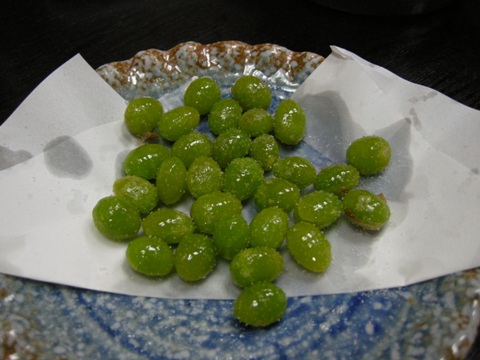 ・「銀杏素揚げ」新物とのことで、まだ鮮やかなグリーンでした。おつまみにいいですね~。