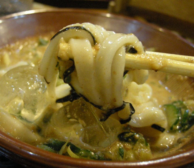 「すったて」のつけ汁を摺りおろした頃にうどん登場