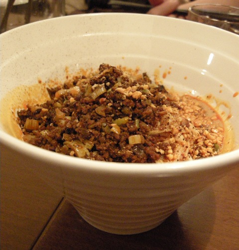 挽肉がたっぷり、ラー油が爽やかに辛くて、山椒のピリピリもバランスいい。麺も好みの細さで、青菜も入っていて見た目も良かったです。