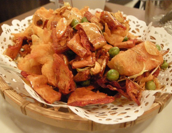 とうもろこしは芯ごと4等分にカットされたもの、それに太い唐辛子がぶつ切りされたものがカリっカリに揚げられたものでした。とうもろこしの芯は硬くて食べられない部分と、ガリガリ食べてしまえる部分と半々ぐらいでした。この唐辛子をカリカリ食べるというのが妙にハマってしまって美味しいのなんの。そんなに辛くも感じなくて気に入ったなあ。