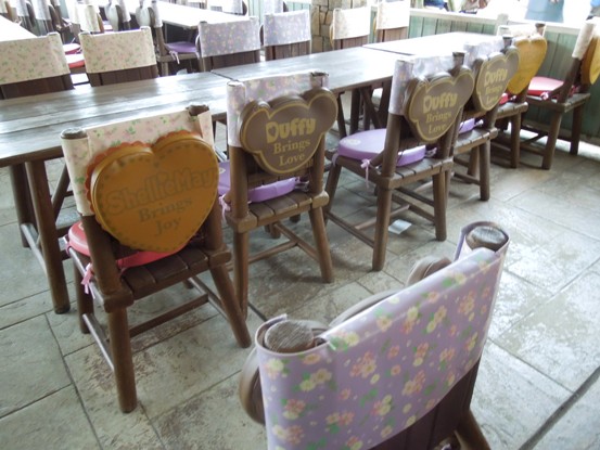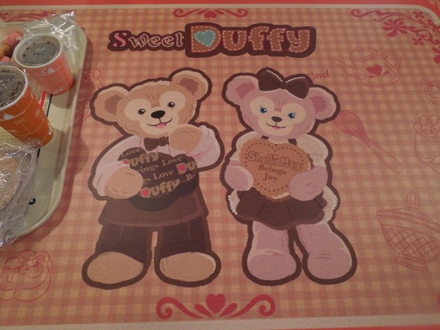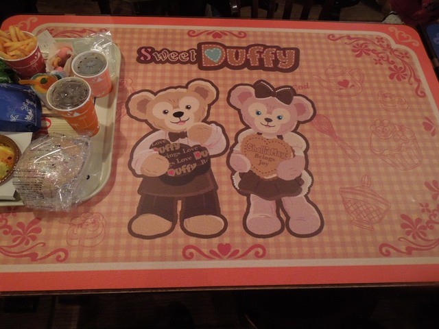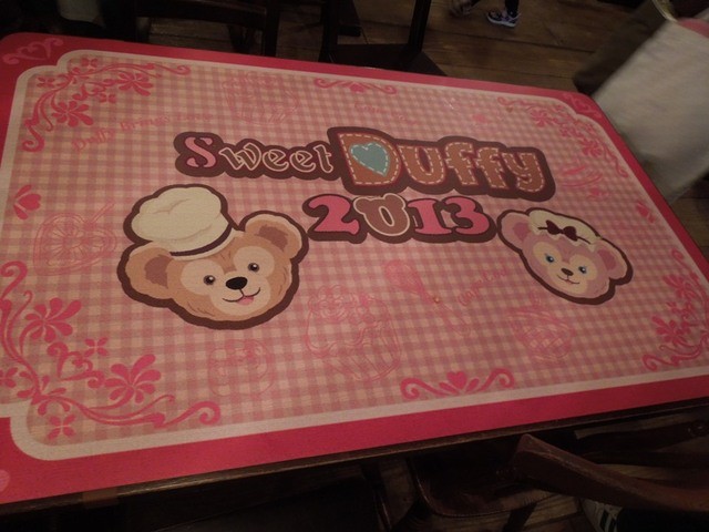 テーブルにはスイートダッフィーデザインのマットが敷かれていて気分が盛り上がります♪去年はこれがなかったのですよね。色とデザインが何種類かあり、近所のテーブルにお客さんが入れ替わる一瞬を狙って写真を撮ってみたりしました。