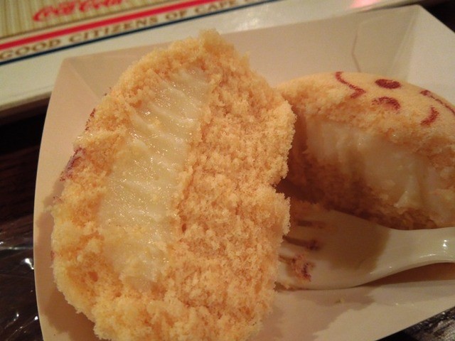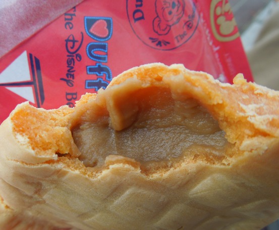 お餅のような食感の生地の中にはミルクティー味のカスタードクリームのようなものが入っています。(ダッフィーの耳の部分は何も入っていません。)