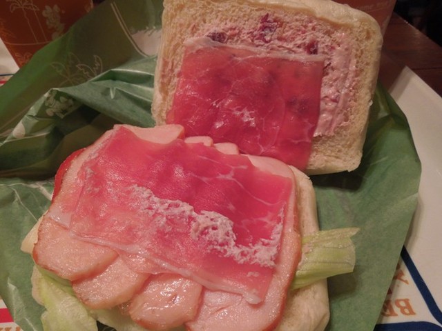(2013/4月)「ブルーリボンセット」の生ハムとスモークチキンのクランベリークリームチーズサンドウィッチ
