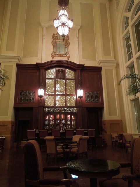 大きなアーチ窓からディズニーリゾートラインが眺められたり、巨大なソファ席があったり、天井のこれまた他では見たことのないようなシャンデリアを見たりしつつオーダーしたお料理を待ちました。