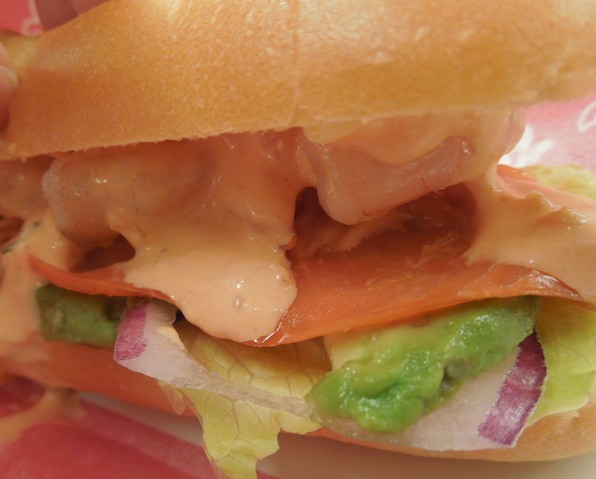 「シーフードとアボカドの豆乳ブレッドサンド」を横から見たところ