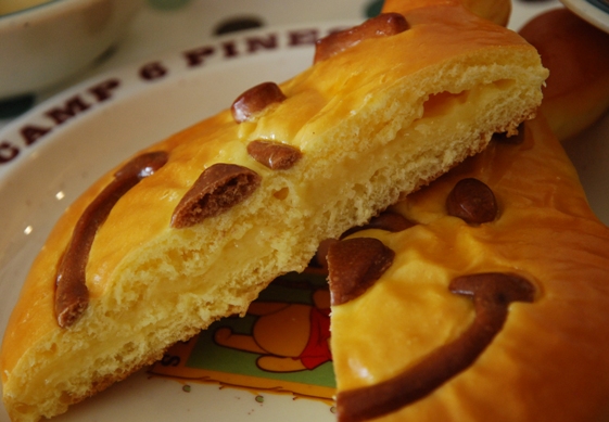 「くまのプーさんのはちみつクリームブレッド」はお値段はちょっと高めですが、プーさんの顔が本当によくできていてすごいです。中にははちみつ風味のクリームがたっぷり。こちらもちょっとさっぱりしたクリームパンという感じで気に入りました~。