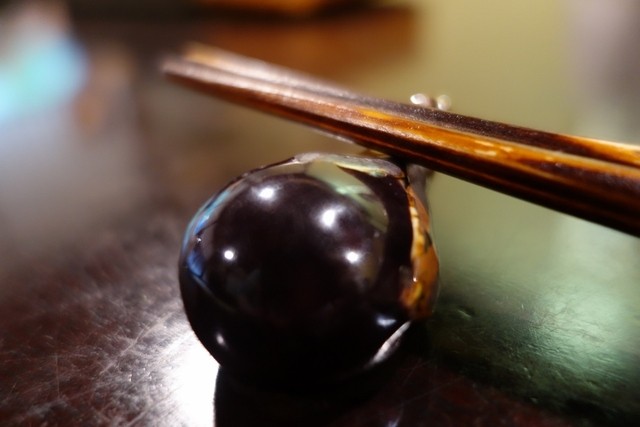 着席するとタオルのおしぼりと急須入りのほうじ茶が出て、お箸と箸置きも。箸置きは茄子の形。お料理は以下のようなものでした。