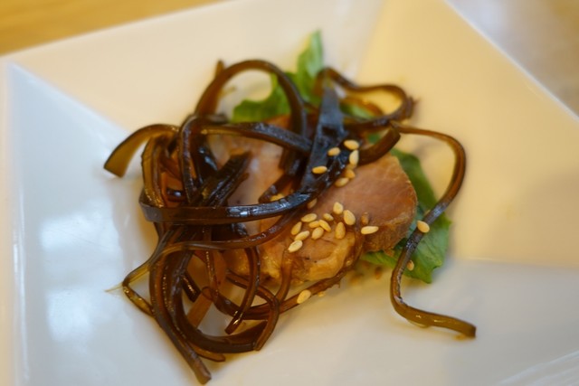 テーブルにセットされた手作りおかずは4品で、当日のおかずは、ズッキーニと海老のソテー、みそポテトとブロッコリー、チャーシューと昆布、キャベツなどの漬物、のようなもので、どれもとても美味しかったです。