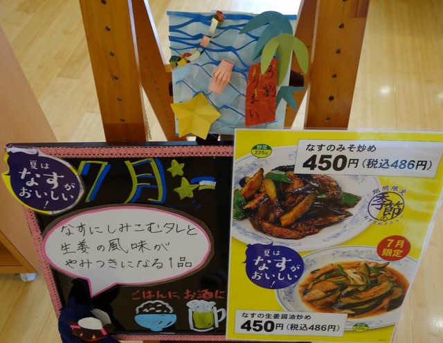 夕食は宿泊料には含まれていないので、館内の「ぎょうさの満州」で食べなくても構いませんが、すぐ近くに飲食店やコンビニもありませんし、私たちは「ぎょうさの満州」の餃子などが好きなので、館内で食べる予定でした。土曜宿泊で全館満室だったので、夕食時間は待ち時間があるかもしれない旨をチェックイン時に説明されていたので、早めの時間に行きました。温泉大浴場の脱衣所にロッカーがないので、貴重品はフロントや食堂がある前のところにある鍵付きロッカーに入れてからお風呂に向かうので、お風呂上りに寄りました。