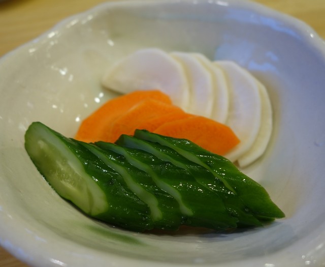 「生ビール(中)」(432円)と「水芭蕉純米300mlびん」(799円)で乾杯。「春雨サラダ」(270円)「冷奴」(162円)「酢豚」(594円)「焼餃子」(226円)「水餃子」(313円)「スーパーチューハイ」(324円)「手作りぬか漬け」(270円)を注文。