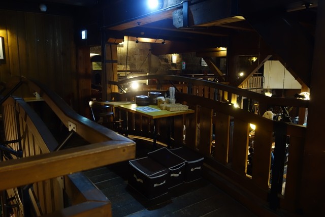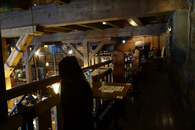 店内は1Fと2Fがあり、どちらでも利用可能です。私たちは2Fは見学&写真撮影だけして、1Fで飲食しました。1Fはテーブル席とカウンター席があり、カウンター席ではおひとりのお客さんも結構いらっしゃいました。小樽運河周辺は観光客が多いですが、この店は観光客だけでなく、地元の人も利用することがあるようです。(先に立ち寄った洋服店の人もここは行くとおっしゃっていましたし)