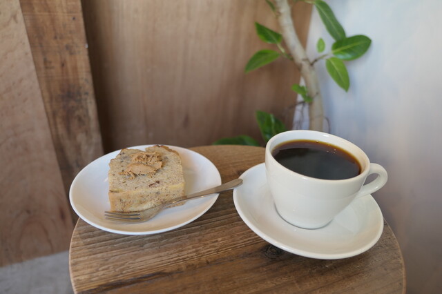 私は「ハンドドリップコーヒー」(「浅煎り」選択で銘柄は当日はケニア)と「季節のパウンドケーキ」(当日はくるみとバナナのパウンドケーキ)を注文。「くるみとバナナのパウンドケーキ」にはコーヒーバターが添えられますが添えていいですか?と聞いてくださり、喜んで添えていただきました。お会計は明細を失念しましたが、全部で1,000円でした。