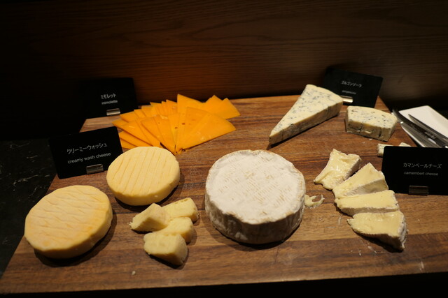 チーズコーナーがあるのも嬉しかったです。ドリンク類も豊富にありました。無添加のコンフィチュールも楽しみました。高級そうなハムもいただきましたし、レモンリーフティーも堪能しました。生のフルーツが何種類かあり、中でも「すざわ果樹園」と書かれたミニ旗のある「ぶどう」もいただきました。サラダ用のミニトマトの色や種類がいっぱいあるのも楽しかったです。オイルやドレッシングも色々ありました。広島レモンドレッシングを選びましたが。