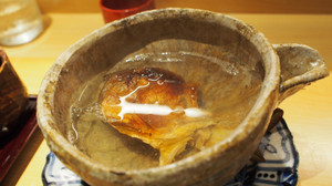 お酒は骨酒です。香ばしく焼かれたアマダイの出汁が酒に滲み出て旨い旨い。