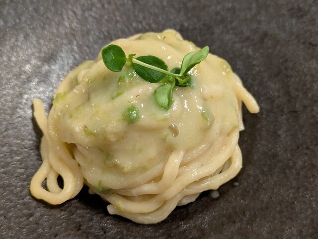 蕗の薹のクリームパスタは独特の春の味覚。