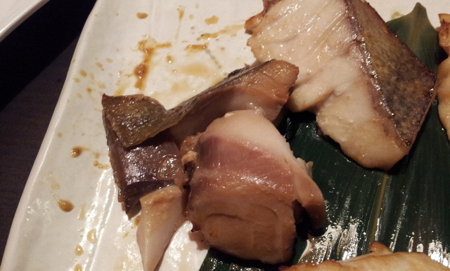 食べかけではなく斬新な盛り付けの魚の激塩焼き