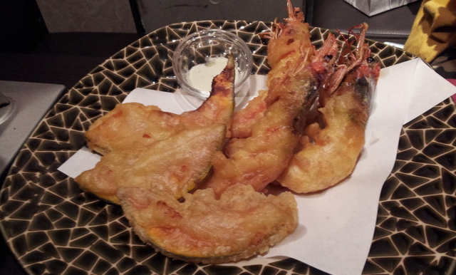 揚げ物盛り合わせ・・・海老とかぼちゃだけ(真っ黒)