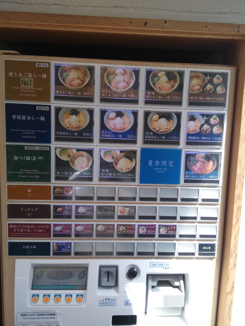 店の外にあるメニューを見ていると、中から店員さんが出てきて「どうぞ食券をお買い...