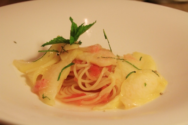 倉谷シェルお得意の冷たい桃のスパゲッティがこの時期から食べられるとは思わなかったので