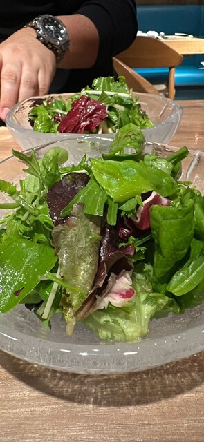 サラダ…無農薬リーフのムスクランサラダ このタイミングでサラダが提供されお口直しでサッパリ