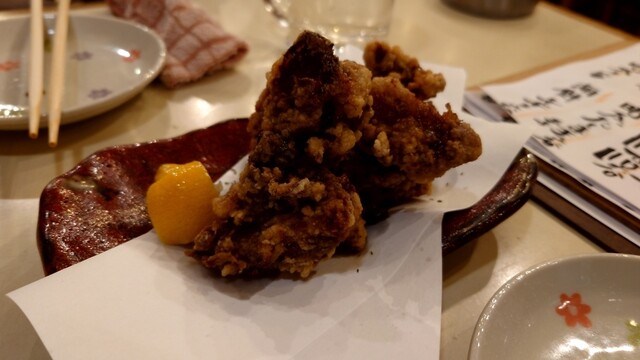 で、お通しが手羽元の唐揚げだ。