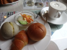 今回は「パンのモーニング」は注文していませんが自家製パン3種とサラダも付きます