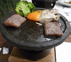 これは初めからテーブルにセットされていました。いろいろ食べている途中でオーツがチャッカマンで火をつけました。火が消えるころには食べごろになりました。