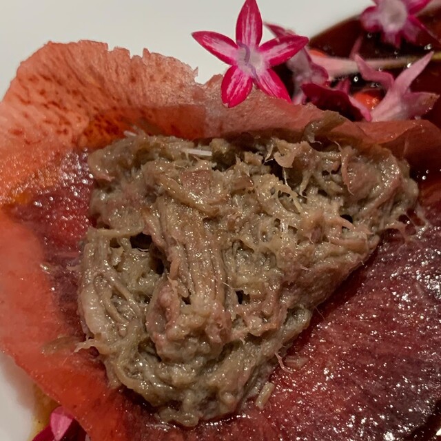 牛フィレも美味しかったけど、添えられてある紅芯大根に包まれた鹿肉のリエットがとても良かった♪