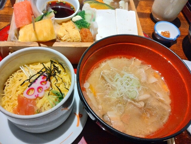 以前美味しかった「しゃぶそば」を食べようと思って席についたら何だか野菜が食べたくなり消化の良い「豆腐野菜蒸し(1080円)」をオーダー。