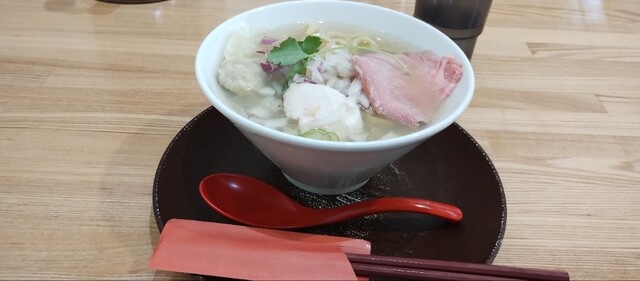 凛とした美しいラーメン。朱い箸とレンゲが◎