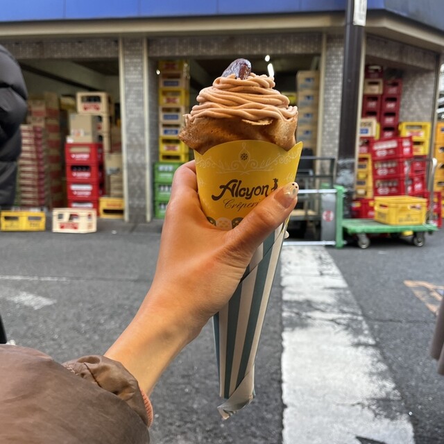 テイクアウトのモンブランクレープは皮もモチモチで美味しいのは勿論、「ジェラード、生クリーム(勿論動物性)、サクサクメレンゲ、甘めのたっぷりのモンブランクリーム」と中身も充実していて本当に毎回満足です('ω')ノ