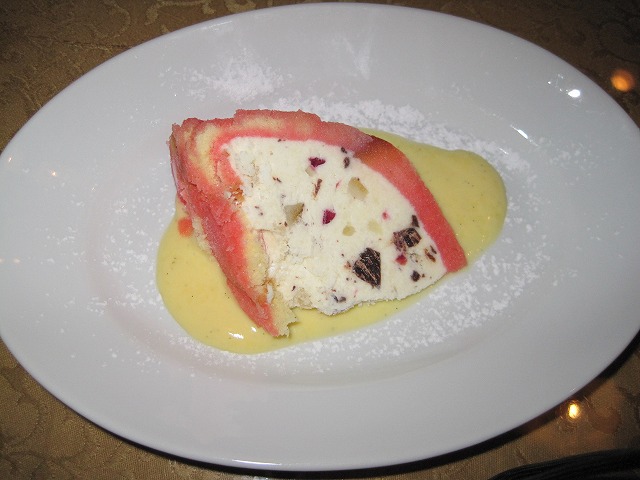 カッサータは、ドライフルーツや、ナッツが沢山入った、半分アイスクリームとケーキの中間の様な、いわば「アイスケーキ」です。お酒も結構、効いてて、美味しかったです☆