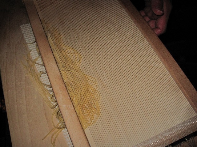 続いては、パスタですが、なんと店員さんが機織機のような物を、押してきて、、