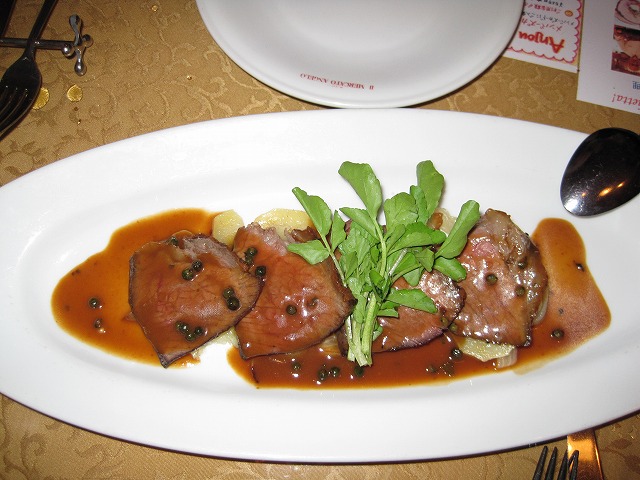 メインの「当店自慢の回転ロースターで焼きあげた厚切りローストビーフ、グリーンペッパーソース」