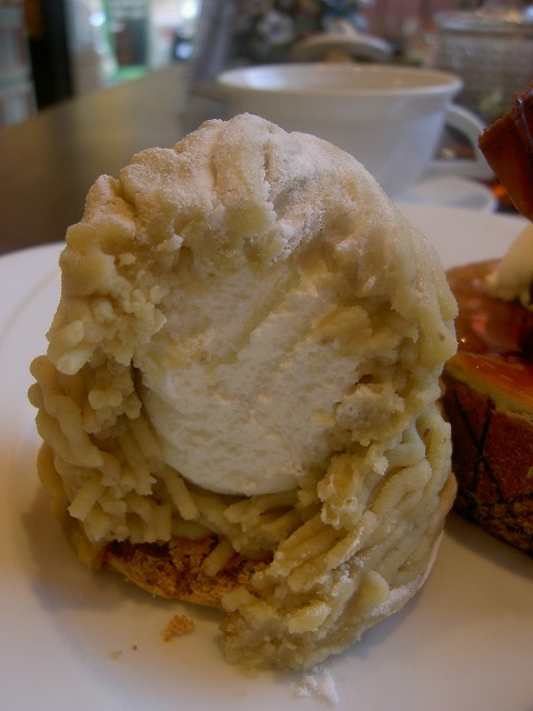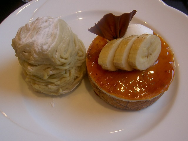 私が選んだ、「和栗のモンブラン」と「バナナのカラメルムース。」そして、「ミックスベリーのソルベ」。飲み物は、カラメル味の紅茶を頼みました☆(勿論、ポットサービスでしたよ〜〜)こういう時、ギリギリ500円のケーキを選んでしまう、ケチなわし。(笑)