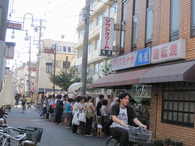 昔ながらの回転焼き屋さんやけど、夏はかき氷やサンデー求めて、老若男女で大行列なお店です。