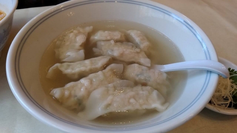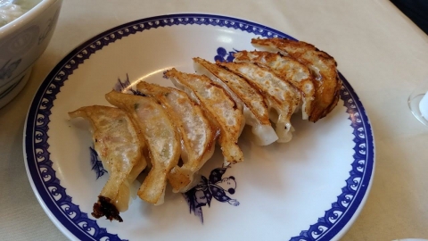 水餃子は焼き餃子を使っているようで、ちょっと物足りないですね。モチモチ感が欲しかったです。焼き餃子は定番の美味しさです。餃子のタレとみそを使って食べて欲しいですね。