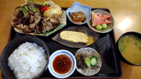 ほんとお母さん的店員さんは1人店内を小走りでバタバタしているけど可愛らしいです。そしてほんとに気が付く方で、焼肉定食でつけダレを2皿用意してくれて連れの分もさりげなく提供してくれます。つれのうどんにもカラのお椀を付けてくれてシェア出来るようにしてくれています。