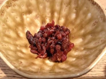 お通し代わりに、蜂の子の佃煮で地元ではへぼと呼ばれています。
