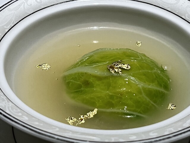 三品目の豚肉と白菜の煮込みは、今回のコースの中でも特に印象深い料理でした。老鶏から取られた澄んだスープを基準に、豚肉と白菜という極めて簡素な素材が、時間をかけて調和しています。派手さはありませんが、滋味は深く、食後に身体の軽さが残る点が印象的でした。
