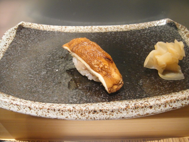 2月13日に訪問。予約を入れていて正解でした。席について見るとカウンター割烹とかを御鮨屋さんにしたようなイメージでちょっと緊張!!お通しを出され「EBISU}でのどを潤している間に落ち着いて普通通り。お通しは大根と鰯の炊いたものでしたが、大根もしっかりした味で大変美味しかった。次に鰯と金目鯛の刺身を・・・鰯は、新しく脂がよく乗ってトロッとして美味しい。金目鯛は、うろこ側を炙って塩とカボスをかけて食べるようにとのアドバイスを守り食べるが、魚の持っている脂が落とされたようで塩とベストマッチでした。ここからは、冷酒に。・・・〆張鶴を切子のグラスで、美味しい、美味しいと心で叫びながら(^。^)。鯵と少しだけ締まった鯖の刺身。冷酒は、静岡の臥龍梅に・・・やや甘みが強く1合で。さらに冷酒の山形の白露垂珠を・・・これは美味しかったがやはり〆張鶴は美味しいと改めて感じる。次第に大将とも話が弾み始め、これは美味しい料理を作ってくれると思い、おまかせに!!醤油焼きもいい味を出しています。醤油がちょっと他のおすし屋さんとは違った感じがしたので聞いてみると「自分であわしたもの」を提供しているとのこと。ここにもこだわりが。写真アップしたものや握りを食べ終了。結構良く飲んで、これだけ美味しいお魚をあじあわせてもらって非常にCPの高いおすし屋さんです。ネタは鯵・鯖などの青物や太刀魚、貝類の新鮮さを要求される食材をメインにされており、このあたりにも大将の自信が見えるような気がします。いずれにしろこのままお客さんが育ててあげればいいお店になるのではと・・・女将さんの接客もいい間合いですし。出される器にもこだわりが感じられます。