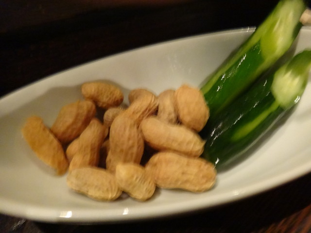 お通し湯がいた落花生とキュウリ浅つけ