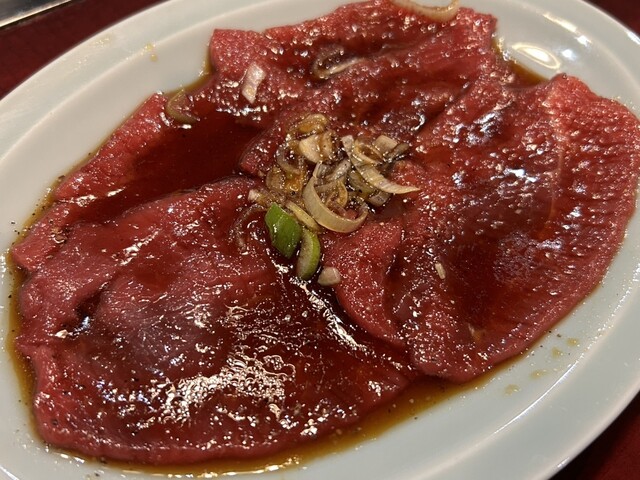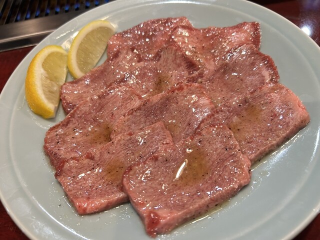 焼肉は上タン塩、赤身角切、赤身ロース、ハラミ、特上レバーをいただきました。