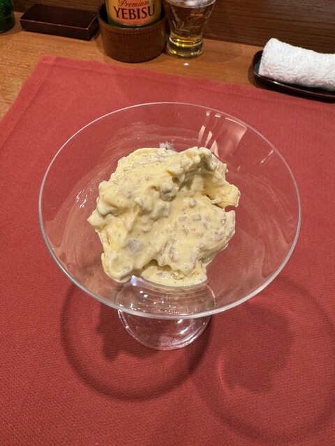 カニと同じで、サイズが大きければ大きいほど香りだけではなく、旨味も強くでてくる。バリバリ食べて味を楽しむという食べ方は他店では見たことがない。ここでは、スライサーは使わず包丁でザクザク切ります。