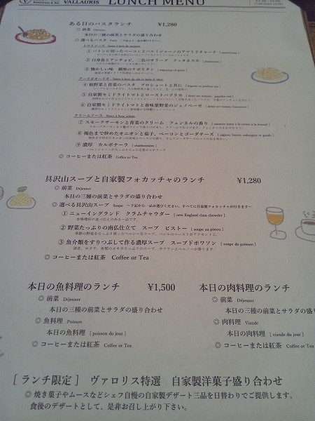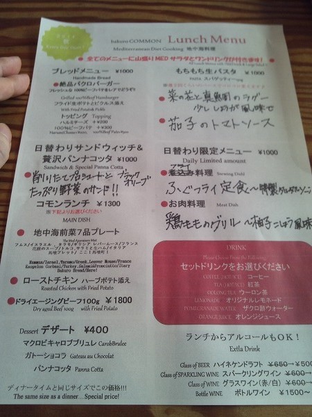 ランチメニュー。