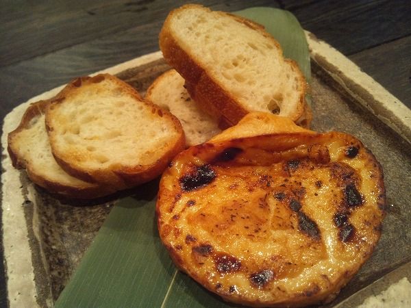味噌チーズの焼いたものをパンにのせて的なやつ。